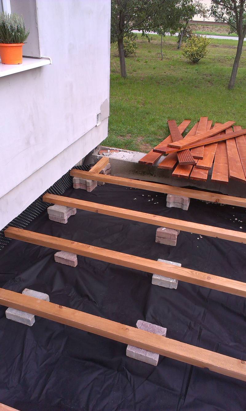 Odizolovanie je doležité, pretože terasou bude pretekať voda voľne a bude vsakovať do zeme, čoby sa však dialo aj v prípade betónovej verzie, takže som nerobil nič navyše. Škoda, že predchádzajúci majiteľ na to nemyslel a narobil mi zbytočnú prácu.