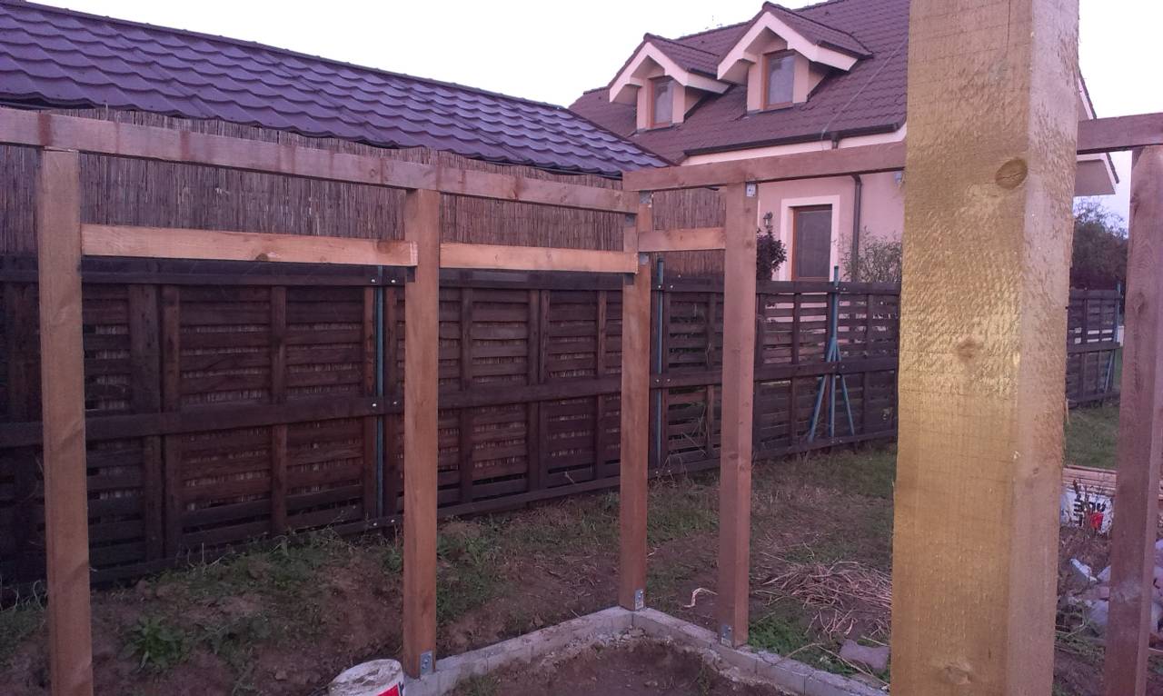 Napílil som jeden hranol na menšie kusy, tieto pripevnil ku konštrukcii L profilmi. Niekto môže namietať, že to nie je dostatočne pevné, ale treba si uvedomiť, že samotná váha strechy s prípadnym snehom bude pôsobiť hlavne smerom kolmo k zemi, takže L profily nebudú až tak zaťažené. Navyše pre istotu je každý istený dvoma až tromi L profilmi, takže strecha drží dostatočne pevne.