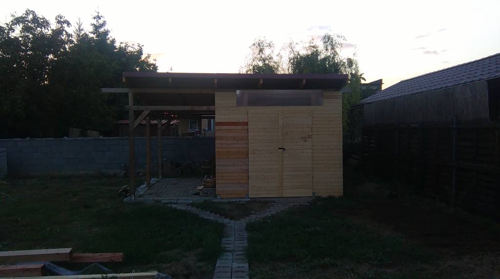 Na začiatku som sa rozhodol pre pultovú strechu z dôvodu jednoduchej konštrukcie bez nutnosti mať nejakú prax, či vedomosti. Napriek tomu som spravil začiatočnícku chybu, ktorú som už spomínal a to fakt, že som nedodržal minimálny sklon strechy, ktoré požadoval výrobca šindlov. Naivne som sa domnieval, že sklon stačí aj parstupňový. Vďaka múdrym hlavičkám na poradni boli moje obzory rozšírené a ja som sa dozvedel niečo aj o podfukovaní vetrom a odporúčaných minimálnych sklonoch.