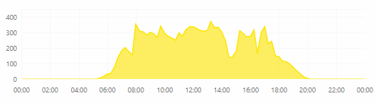 Nejprve jeden obrázek z typického jarního dne (7.4.2018). Nebyl úplně jasný den, ale sluníčko občas vykouklo. Měnič IMEON poskytuje poměrně podrobné statistiky, navíc odesílá a ukládá data na serveru, ke kterému máte přístup. Jak vidíte, využitelná energie ze slunce je už od 7:00 - 18:00.