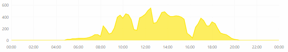 Dnes (4.7.) byl skoro ideální den na fotovoltaiku. Po revizi jsem mohl pustit měnič ze řetězu. A výsledek?