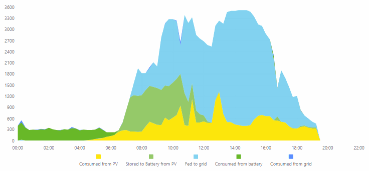 Stále mám vypnutou dodávku do sítě, čekám na vyjádření EON. Jakmile dodávku do sítě povolím (klidně i jen část výkonu), invertor se nebude muset držet zpět, aby neposílal nic zpět a dostanu se v soběstačnosti na lepší čísla.
