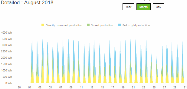 Fotovoltaické panely mění světlo (sluneční záření) na elektrickou energii. Zdálo by se, že nejlépe si povedou v létě, kdy slunce praží, až se z nás pot leje. Ale není to tak. S rostoucí teplotou klesá výkon panelů. Pro srovnání uvedu půběh srpna a září 2018, kdy v srpnu teploty překračovaly 30°C a v září se pak citelně ochladilo přes den do 20°C. Z následujících obrázků je vidět, jak se to projevilo na výkonu panelů. Připomínám, že nainstalovaný výkon je 5,4kW. Nižší teplota v září znamená o půl kW vyšší výkon panelů.