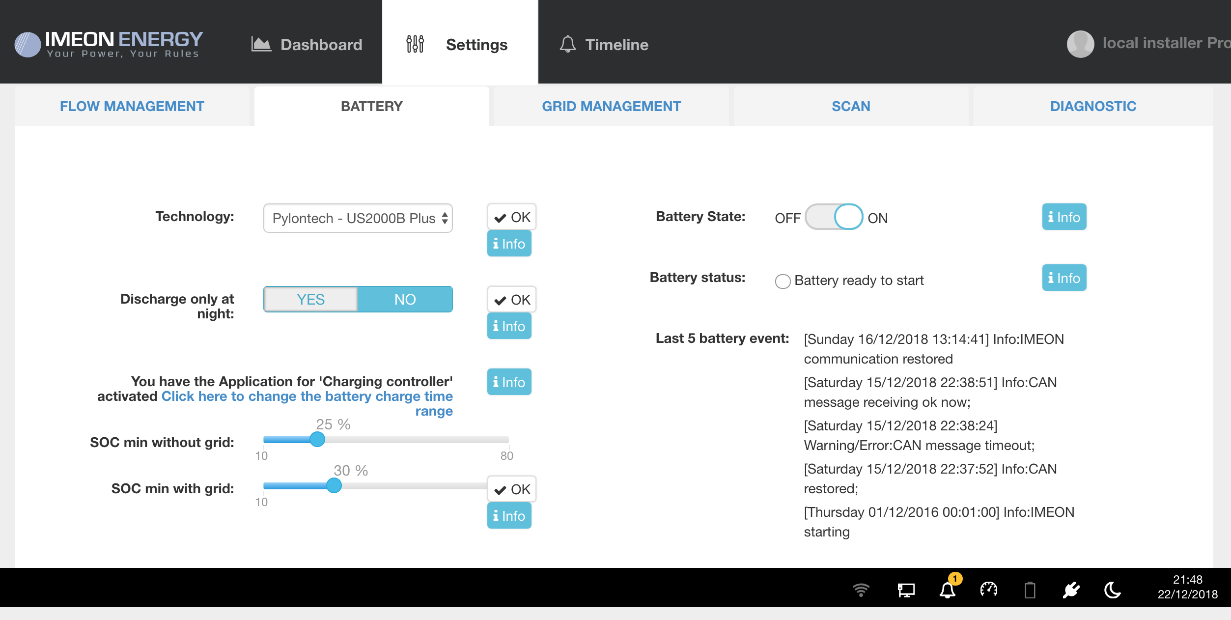 Diky. Installer.pro@local neobsahuje u pylontechu nic užitečného. U olověných je tam byla navíc možnost nastavení nabijeciho a vybíjecího proudu.