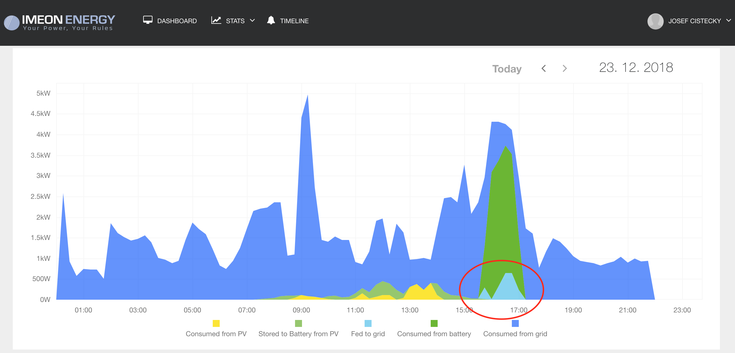 Mně právě překvapuje, že monitoring ukazuje, že při vybíjení baterií dodávám do šítě (což by bylo divné), ale přímo web rozhraní zařízení Imeon to neukazu viz příloha. Takže co je pravda? :)