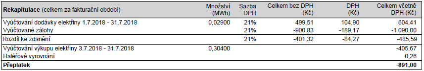 Jako dodavatele mám Bohemia Energy, jako distributora EON. EON ze zákona musí vykupovat přebytky, ale proč to prodávat distributorovi, když dodavatel nabízí lepší podmínky. V rámci bonusového programu od Bohemia Energy, která vykupuje za ceny na trhu pak může vypadat faktura za elektřinu třeba takto: