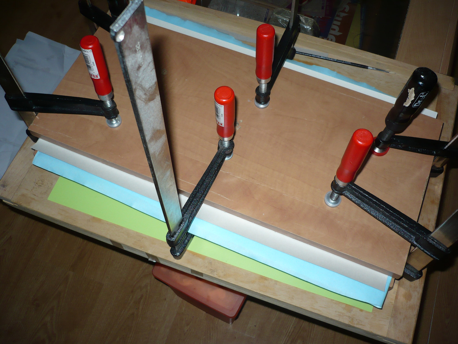 Pak zalepte dvoumilimetrové proužky na hranu desek. Myslím, že je to z fota dostatečně jasné.