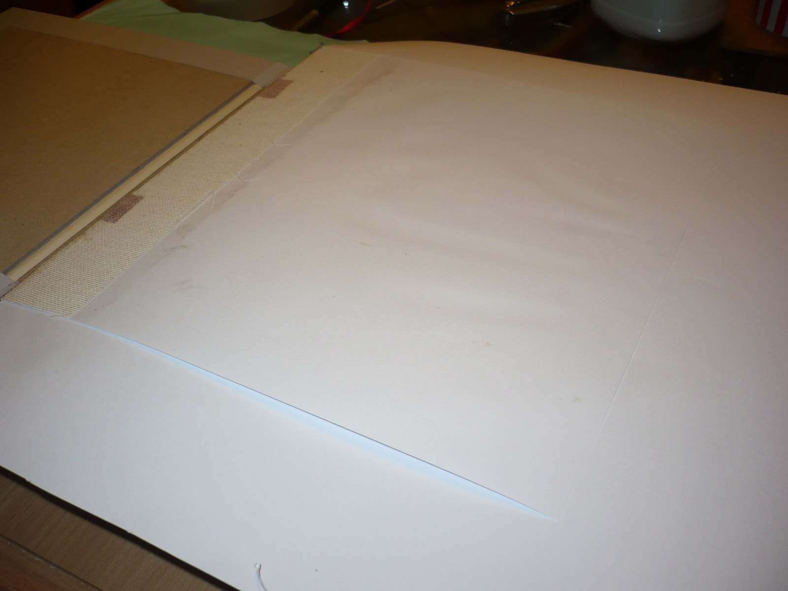 List předsádky si podložím větším archem papíru, aby se lepidlo nedostalo do bloku. Po natření lepidlem tento arch samozřejmě vyjmu.