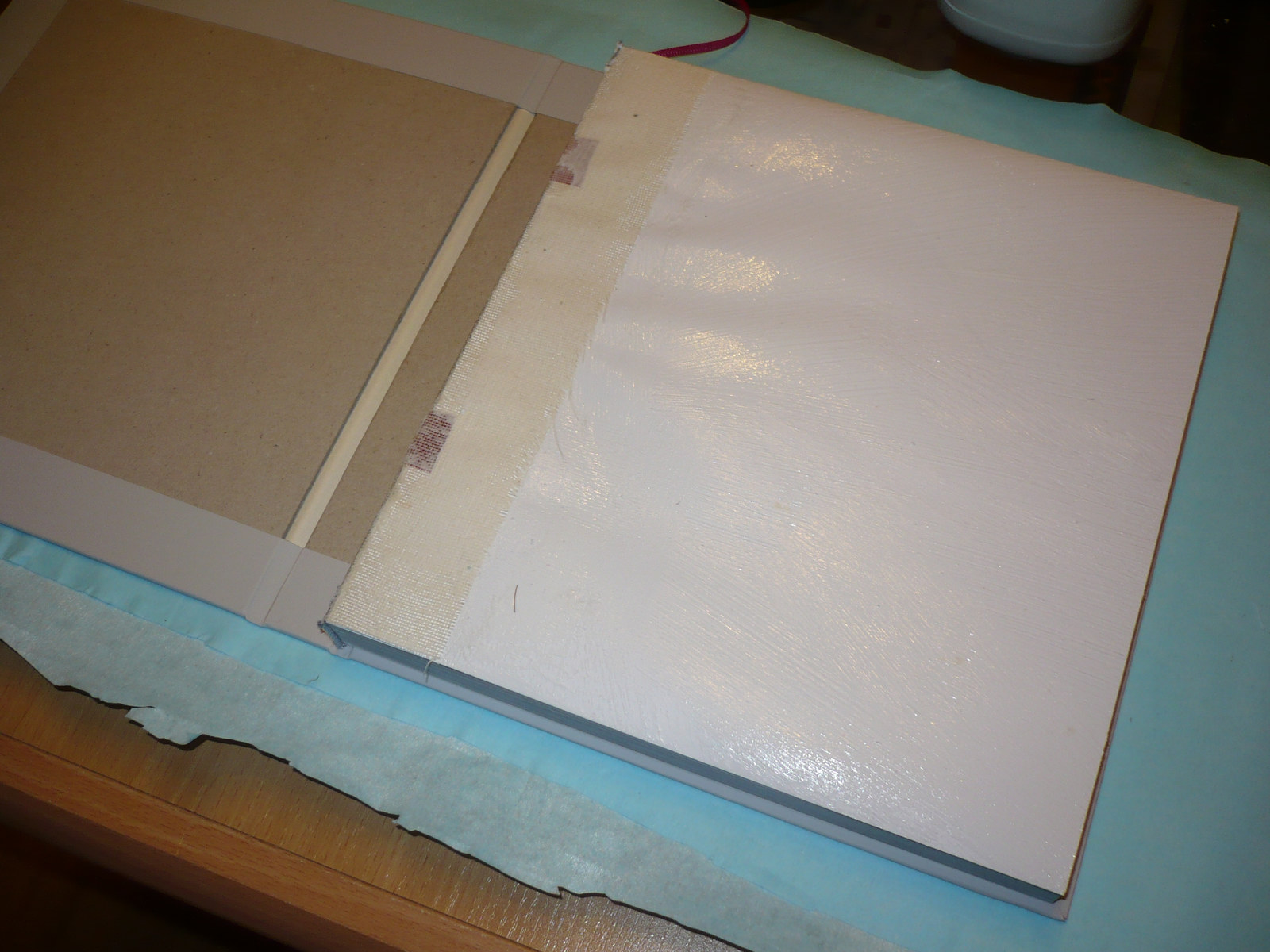 Celé to opět utáhneme do svěrek a zase aspoň 24 hodin, ale klidně přes víkend. Pokud potahujete reliéfním materiálem, nezapomeňte na měkčí mezivrstvu, tentokrát samozřejmě z obou stran. Buďte trpěliví, je to poslední schnutí a to co po neděli vytáhnete, je už hotová knížka.