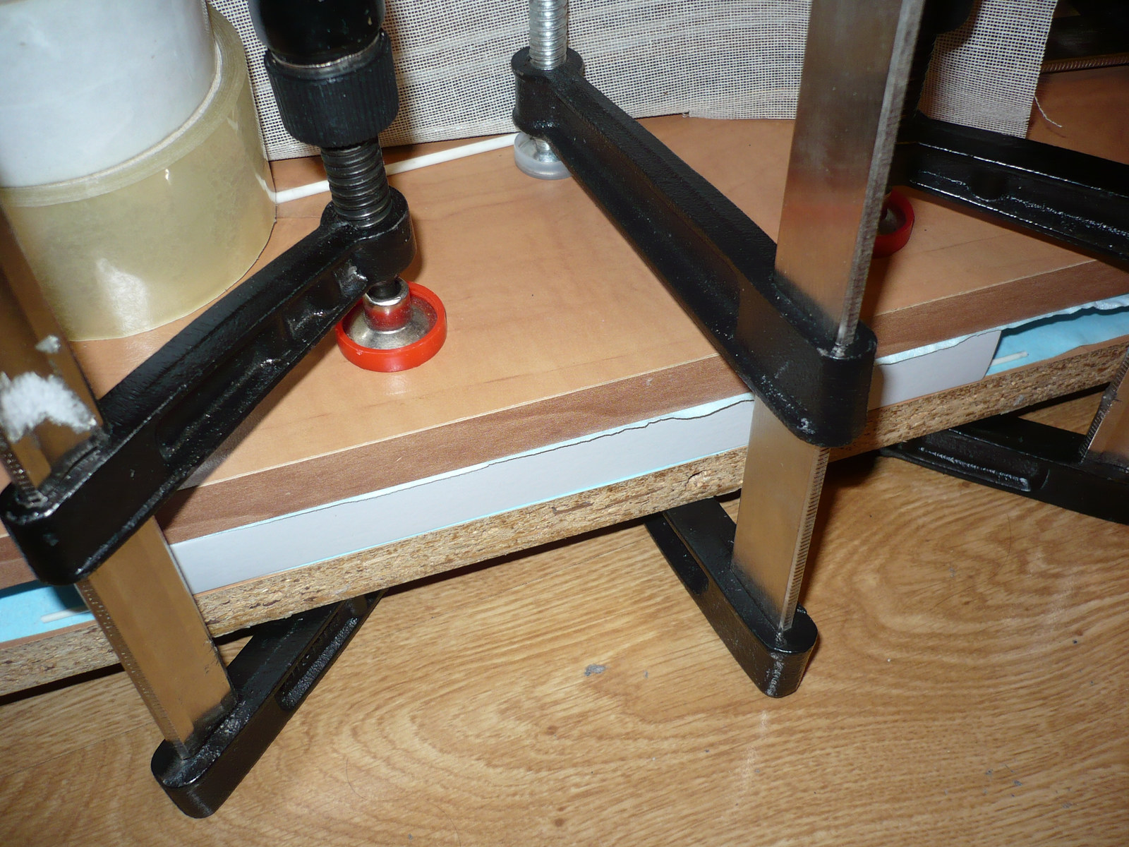Celé si to klidně nejdřív nazkoušejte nasucho, aby vás nic nepřekvapilo. Vlepování do desek je asi nejkritičtější práce. Hlavně proto, že musíte pracovat při samotném vlepení na první dobrou co nejpřesněji. Pokud lepení zkazíte, tak v nejlepším případě to skončí výrobou nové předsádky, ale může se to zvrhnout až do výroby nového potahu...