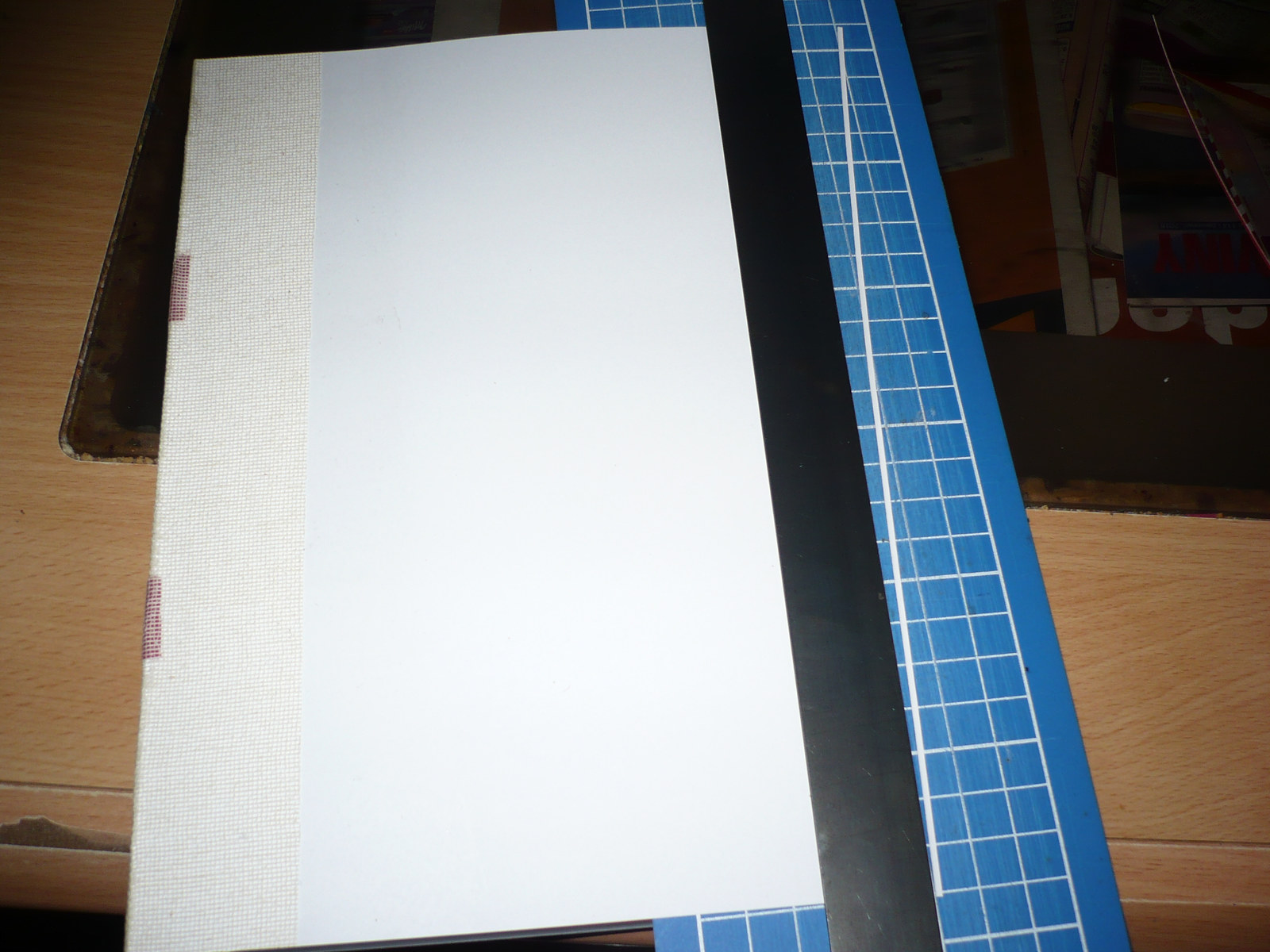 Maličko důležitá vsuvka. Úprava předsádky. Je jasné, že předsádka byla oříznuta spolu s knižním blokem a tak má správné rozměry. Za sucha. Problém je, že ji budeme natírat lepidlem a bude pracovat. To není jako při strojním lepením, kdy je to mlask-plask a je nalepeno a papír ani nestačí zareagovat. Nám to bude chvíli trvat a papír bude mít čas se natáhnout.