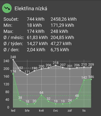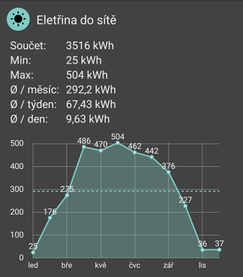 Pokud si všimnete vyšší měsíční spotřeby domu, je to způsobeno WiFi přípojným bodem poskytovatele internetu na domě, přidal pár antén, nějaký ten switch. Narostl konstantní odběr, což měsíčně dělá nárůst asi o 80kWh.