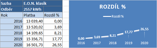 Tohle si třeba při postupném nárůstu elektřiny ani neuvědomíte, ale v roce 2020 ve srovnání s rokem 2016 zaplatíme za elektřinu o více jak 26% víc. A trend v dalších letech bude obdobný.