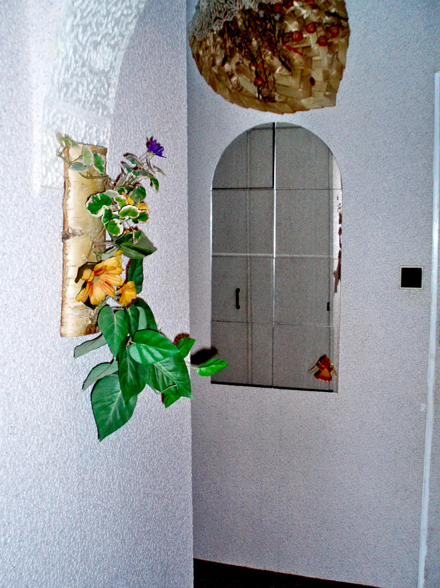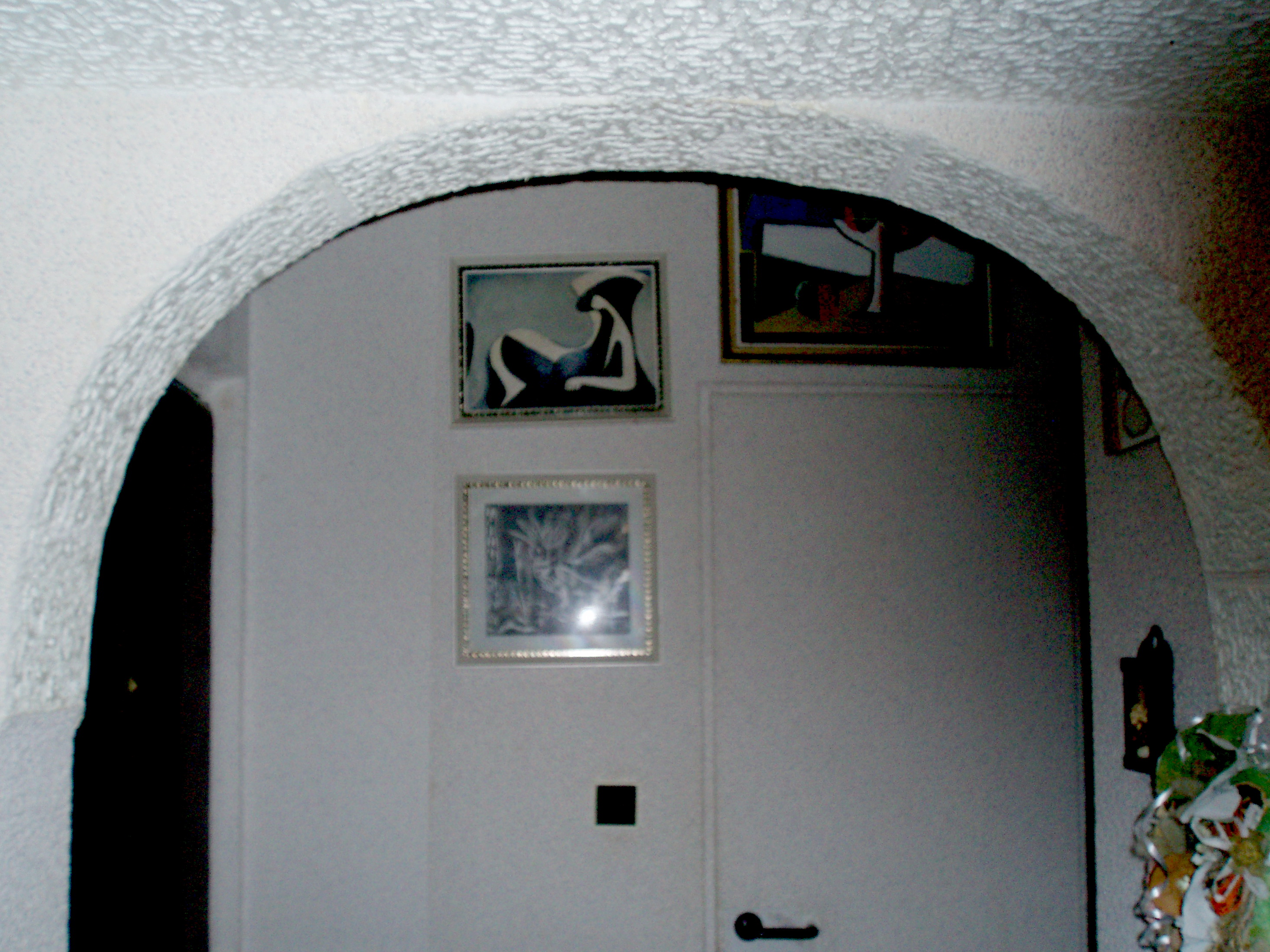 Oblouků v paneláku jsem vyrobil řadu.Použil jsem silnější polystyren a do průchodu nalepil vyřezané oblouky akrylovým lepidlem.Protože otvor je sešikmený,použil jsem dva čtvrtoblouky na stranách a vnitřek vyplnil přířezy ze slabšího PS Nakonec jsem celou plochu vytmelil a po zaschnutí oblouk polepil pruhy z PS kazet.Plochu,navazující na stěnu lze opět buď potapetovat,nebo překrýt stěrkou sádrovou a přemalovat.