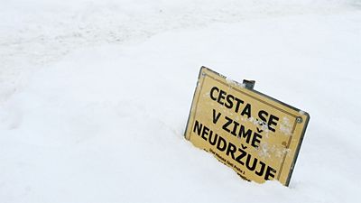 Znáte značku "V zimě se silnice neudržuje"? Tedy: Přejděte na protější chodník - v zimě se tento neu…