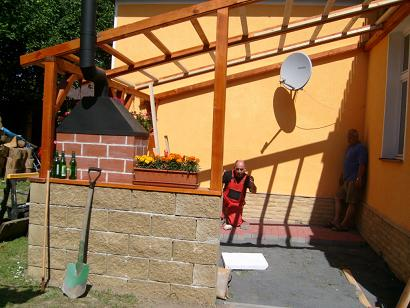 aha,takže se nemusi žádat o stavebni povolení?? Minulý rok,stavěl známý,altán a jen na patkách a patil pokutu...My jsme dělali pergolu ve výklenku,domu podezděnou se zidkou a cihlovým krbem a nikoho sme se nák neptali,prostě sme to nevěděli..vypadá to moc krásně ,je tam bezva posezeni,je to celé zastřešené.:-)Moc krásné,vymyslela sem to jááá...:-D já sem ten myslitel a manžel ten co pracuje..měj se..
