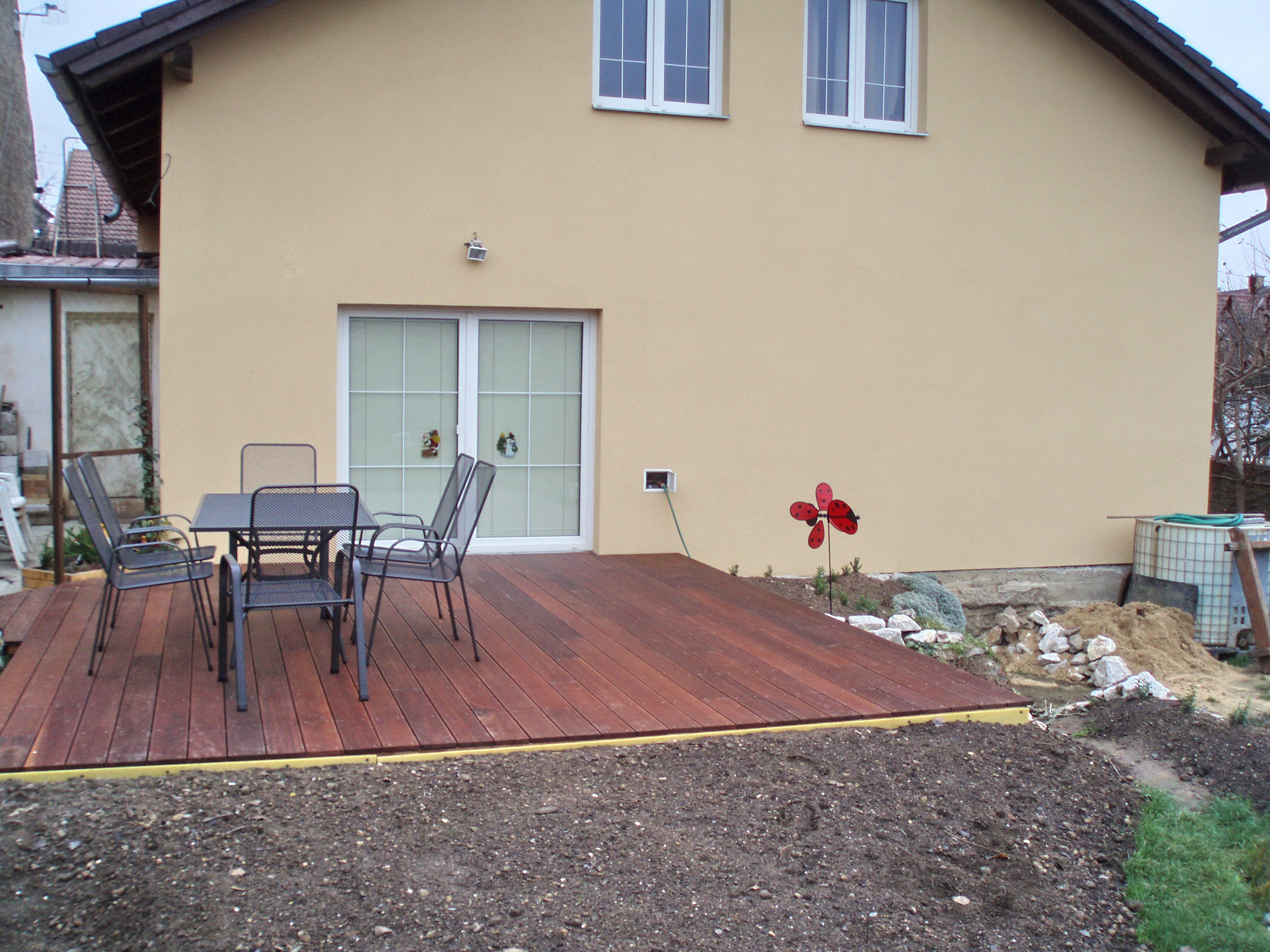 řeším teď přistavění terasy, mám hotovou hrubou stavbu (stěna domu dlouhá 8,5m, rozměry terasy 7,5x3 m). Neudělal jsem základy terasy při výstavbě základové desky. Zkoušel jsem hledat jak "přifařit" terasu k domu, ale prakticky jsem se jenom dozvěděl že by se měla udělat dilatace, protože nebudou spojené základy terasy a domu a nebudou ani stejně hluboké (základy domu jsou 90cm + 2 řady ztraceného bednění, terasa 60cm a 1 řada ztraceného bednění). Z čeho tedy a jak velkou dilatatační spáru udělat, stačí např. XPS 1cm nalepit na ztracené bednění domu a vyspádovat terasu kvůli odvodu vody? Jako finální úpravu terasy zvažuji dřevěnou terasu (tvrdé dřevo akát, apod.).