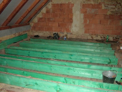 Na ně připevnit podlahu a ta by se starých trámů nedotýkala.