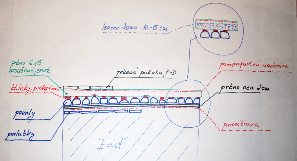 Ted stojim pred problemem jak na to postavit rost, abych jednak docilil misto pro izolaci (planuji Isover domo 10-15mm) kvuli teplu, pak parozabranu zespoda. Inu zbyva krocejovy hluk a to dorovnani.