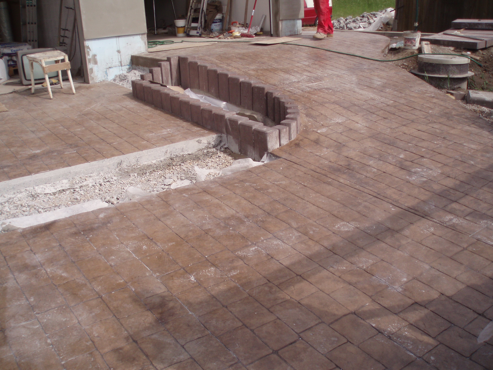 Další možností je Artbeton,vrstva betonu s barveným povrchem a raženým povrchovým desénem.Jedna z možností je na fotce.