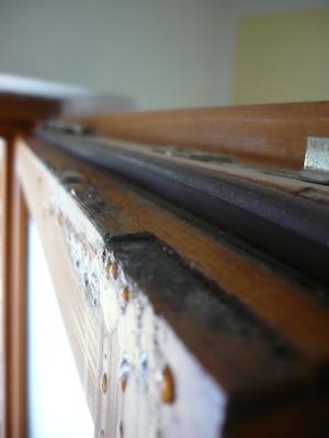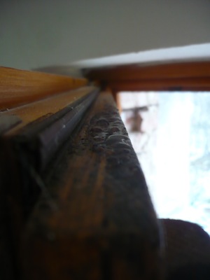 Ahoj, mám další příspěvek do plísňové sezóny :) Zjistil jsem dneska při úklidu, že mi začínají plesnivět dřevěná okna v rámu. Může to být těsněním? Přišlo by mi logické, že se přes něj dostane vlký vzduch z domu a kondenzuje tam, kde by neměl. (Jinak vlhkost doma myslím celkem v normě – pokud mrzne, pohybuju se mezi 50–60 procenty. Pokud je vlhko a kolem pěti stupňů, leze to trochu výš, ale to zas mocně větrám.) Takhle to vypadá: