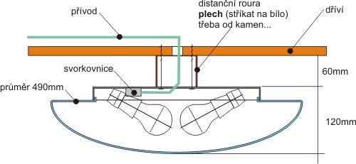 Bude li světlo montované na dřevě, je vhodné řídit se pokyny na svítidle. (Dodržovat watáž, proto preferuji úsporné žárovky, které nehřejí)