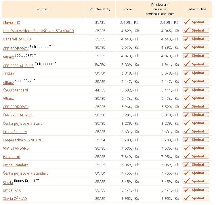 Mám od Slavie povinné asi za 2900 a Allrisk havarijní od ČPP asi za 8500.