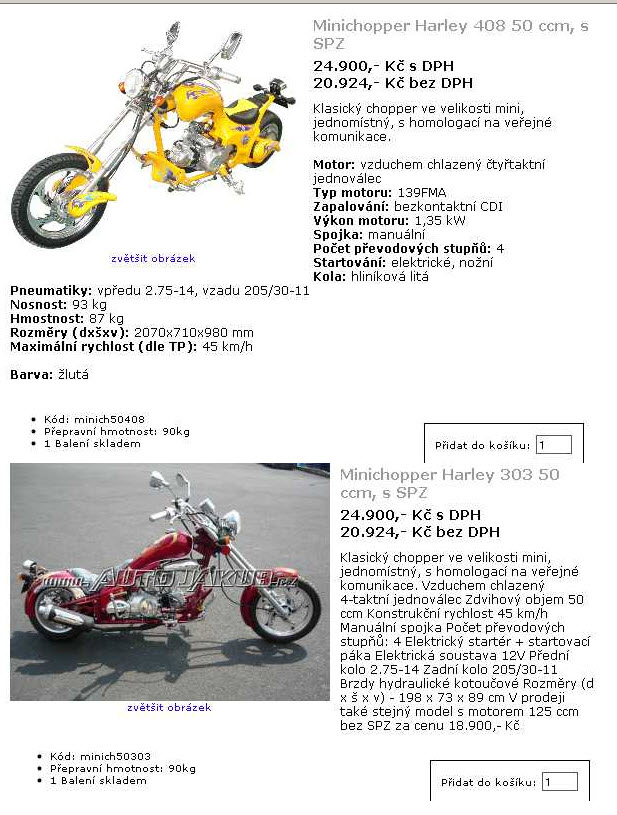 Dobre, tak jeste jednou...ja chci CHOPPER a ten NENI O RYCHYLOSTI! Kdybych se chtel zabit, tak si koupim supersport. Klidne se budu ve dvou plahocit v 70km/hod, jde mi jen o pozitek z jizdy a o to, aby byl stroj spolehlivy