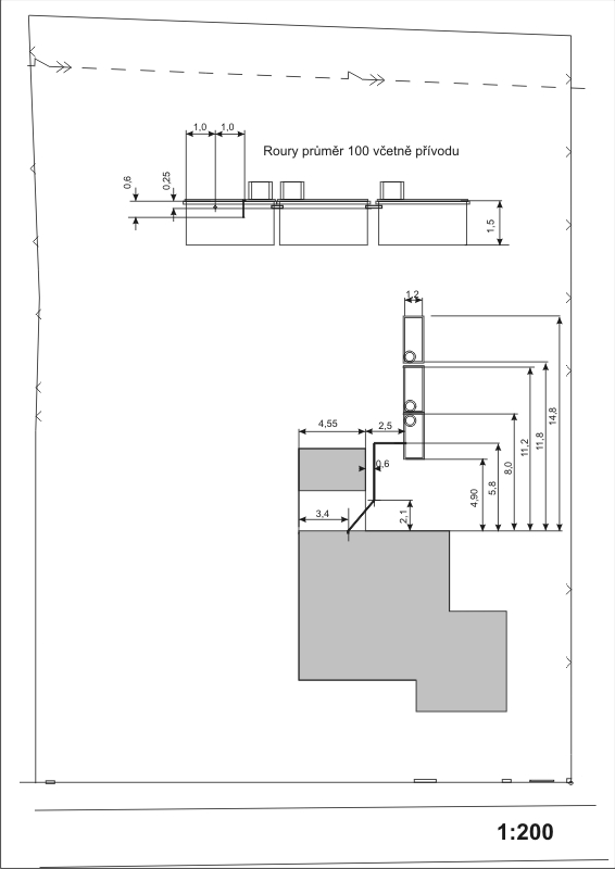 Stavba 2002 - čističku s trativodem zakázali, bo jsou u sousedů studny. Vlevo 30m, vpravo 20m.