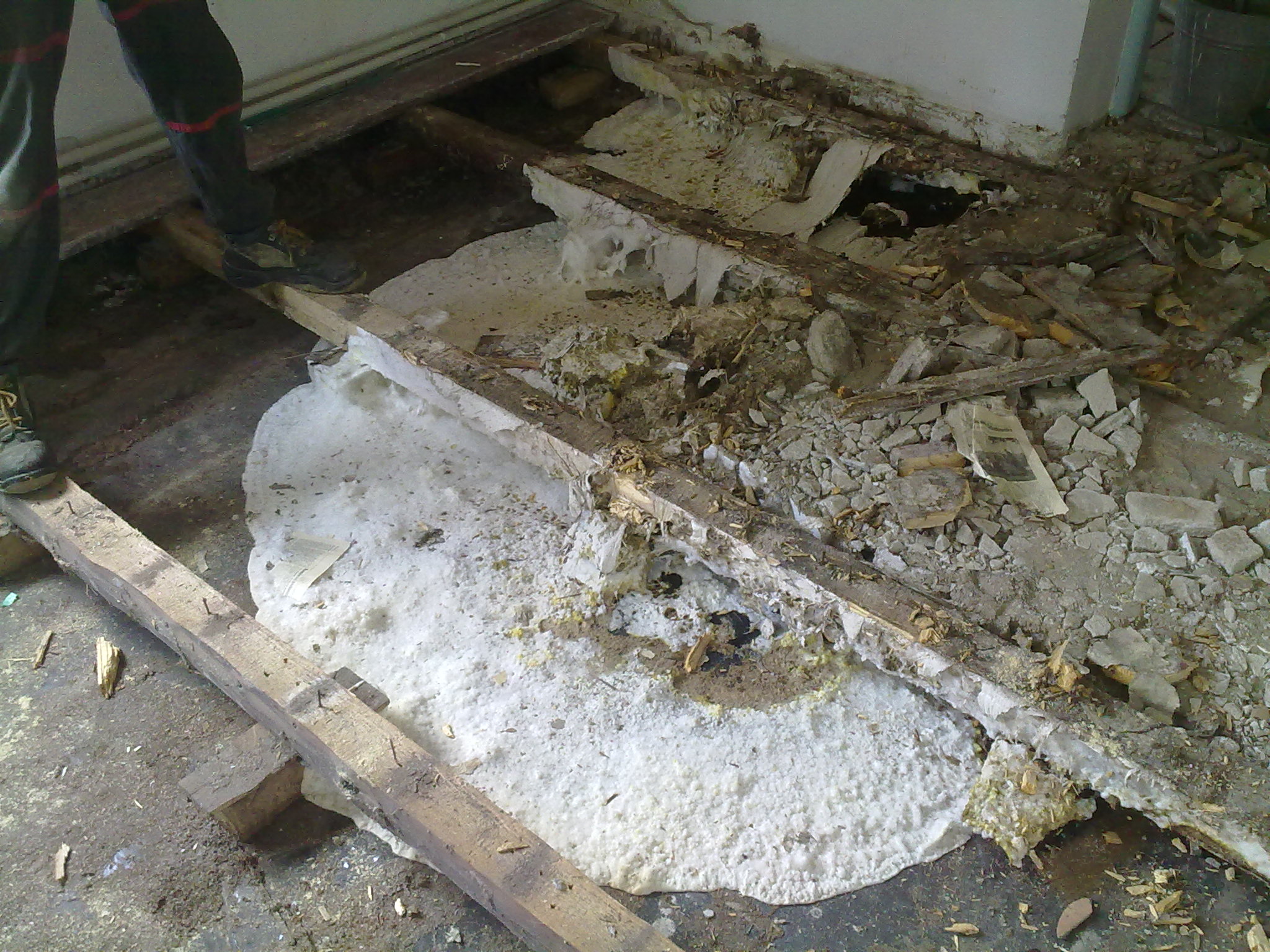 No hrůza hrůzoucí. Doporučuju cestu, kudy je třeba chodit, vystlat novinami, postříkanými Savem. Ty potom i s dřevem spálit. S botami znečištěnými houbou se nepohybovat nikde jinde, než je třeba. Nejlepší by bylo pálit vše v přítomných kamnech, aby se to nikde moc nenosilo. Novou podlahu by asi opravdu bylo lepší udělat z betonu. Ale i tak vše řádně ošetřit chemicky. Hlavně je potřeba zjistit, kam se až vlákna mycelia dostaly. Jinak to bude pokračovat v přilehlých místnostech. Že to tam bude prolezlé, je více jak jisté.