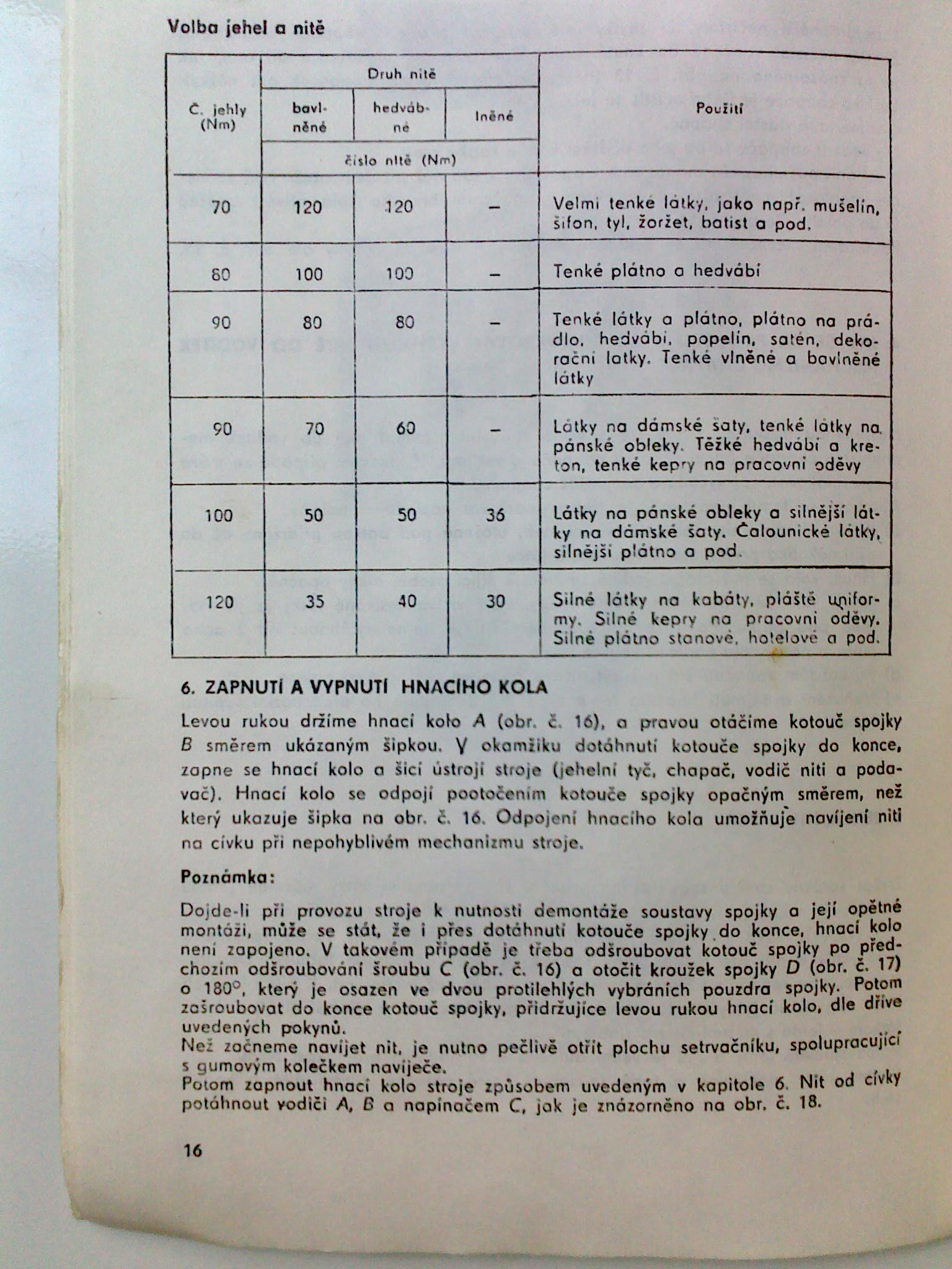 4, otocit rucnim kolem tak aby jehla byla v horni pozici