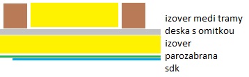 mam zhruba stejný problém. Rekonstruuji starší dum, strop je zespodu omítka+rákos,desky,a mezi trámy jsem nacpal isover, nad tim nevyhříván pudni prostor. jenze jeste zespod to bude chtit parozábranu, takze nově by to bylo : sdk,parozábrana,isover 12cm,omítka+rákos,desky,mezi trámy isover.