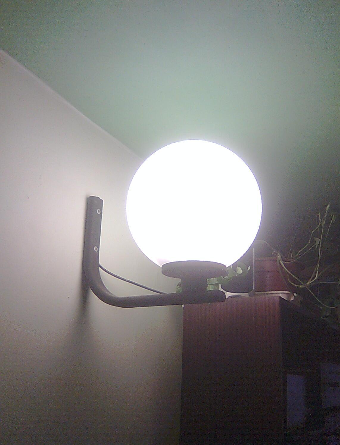 Já sem si dal domu MH 70W pouliční lampu, která má kryt kulového tvaru r=50cm (matný a z plexiskla) a pěkně se mi tu i hodí