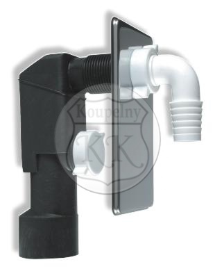 Na obrázku máš jasně ukázáno jak to patří do zdi.Ten černý konec co je zesílený uřízneš a vsuneš na něj trubku s hrdlem.Poté pokračuješ do odpadu.Zazdíš to tak hluboko jak je naznačeno.Krycí plech je zároveň s kachličkami.Otvor co je zakrytý je na čistění.Dává se to asi do výšky pračky,aby se vypouštěcí hadice nelámala.
