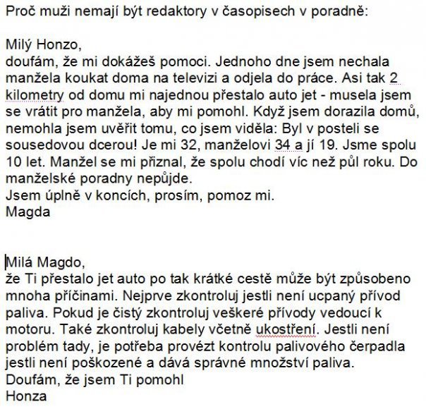 | A co jako? Lépe jí poradit nemohl když ani pořádně nenapsala jak se ta závada začala projevovat, tře… manas 01.04.2011 10:25 |