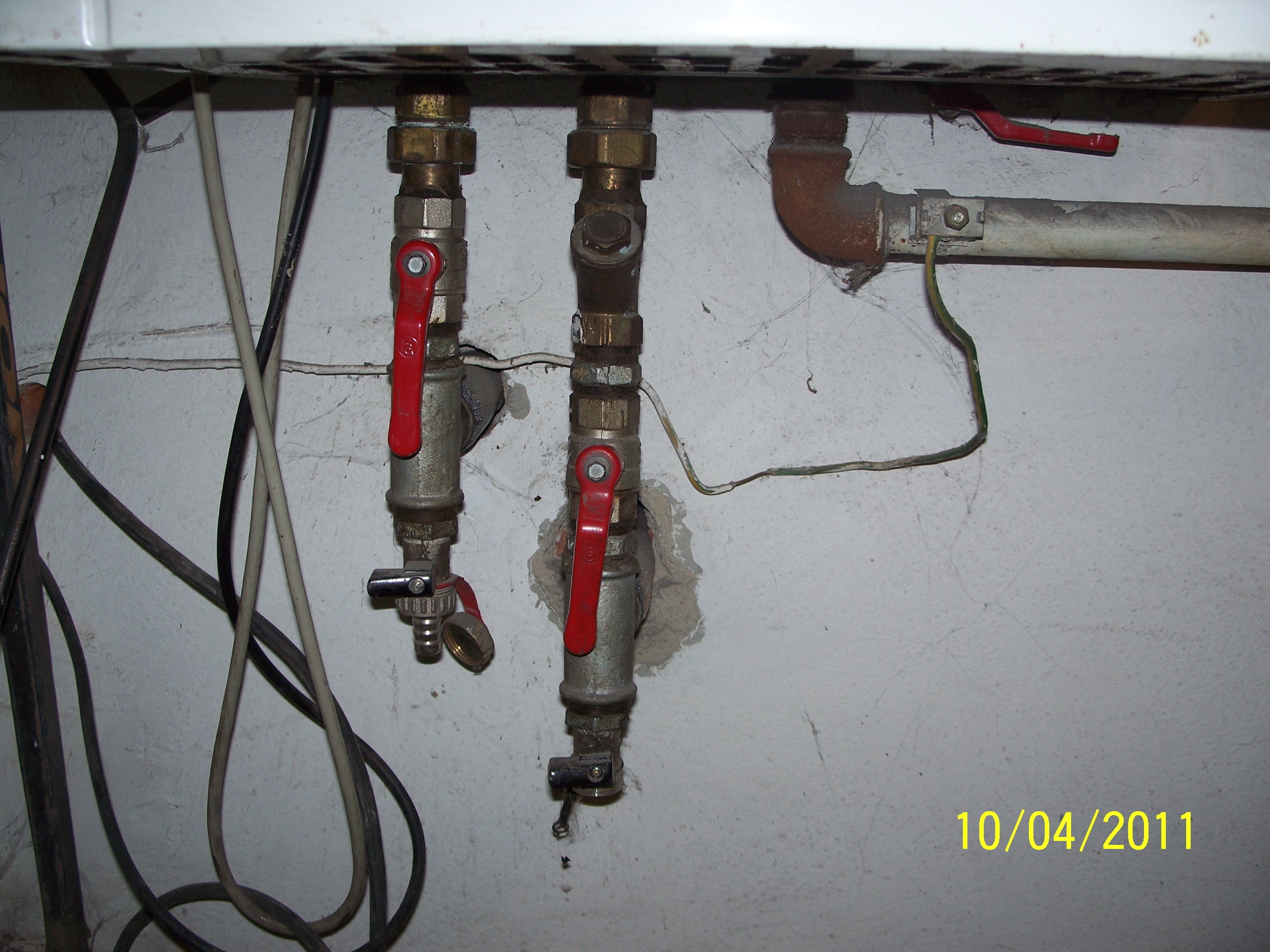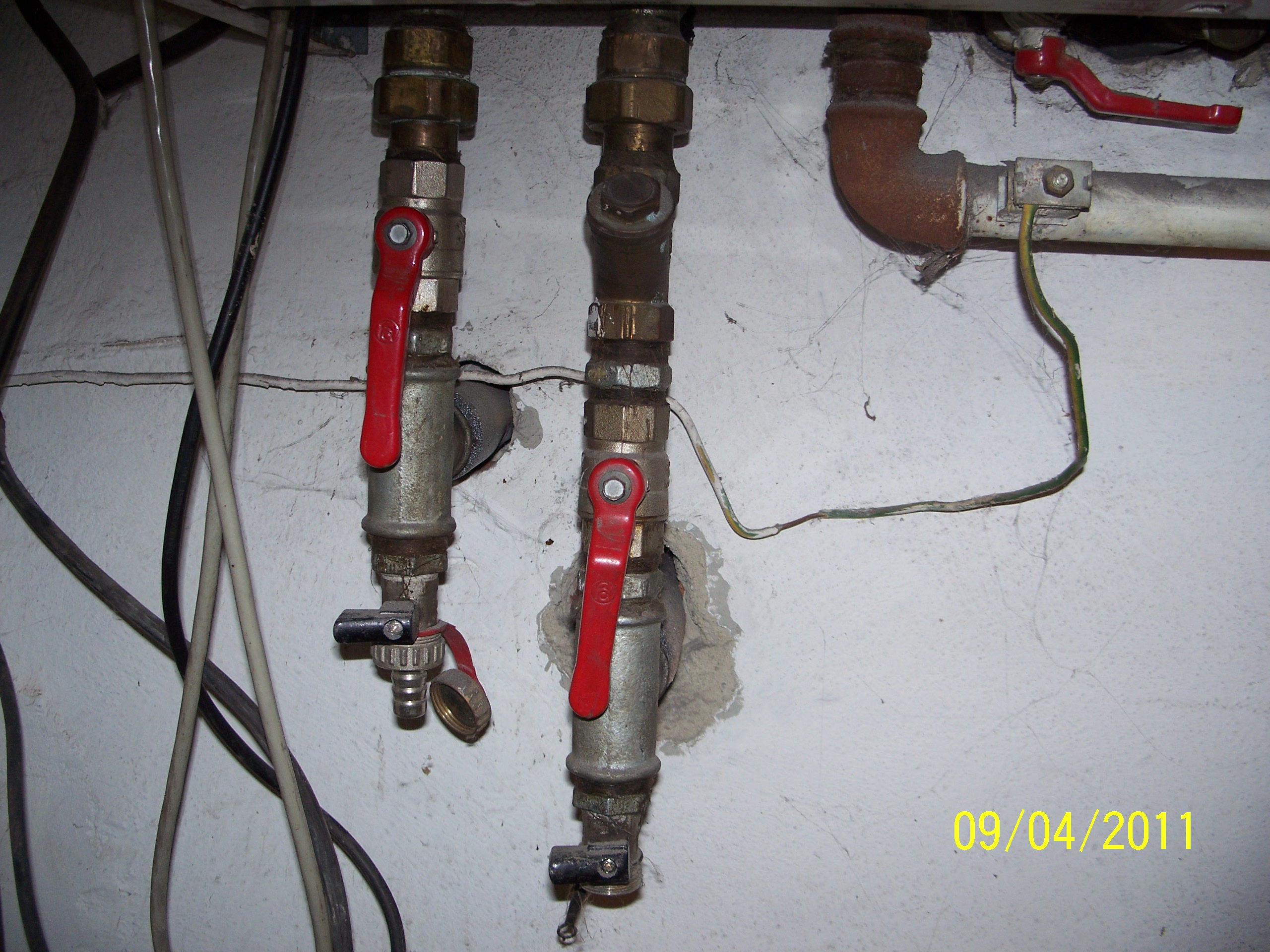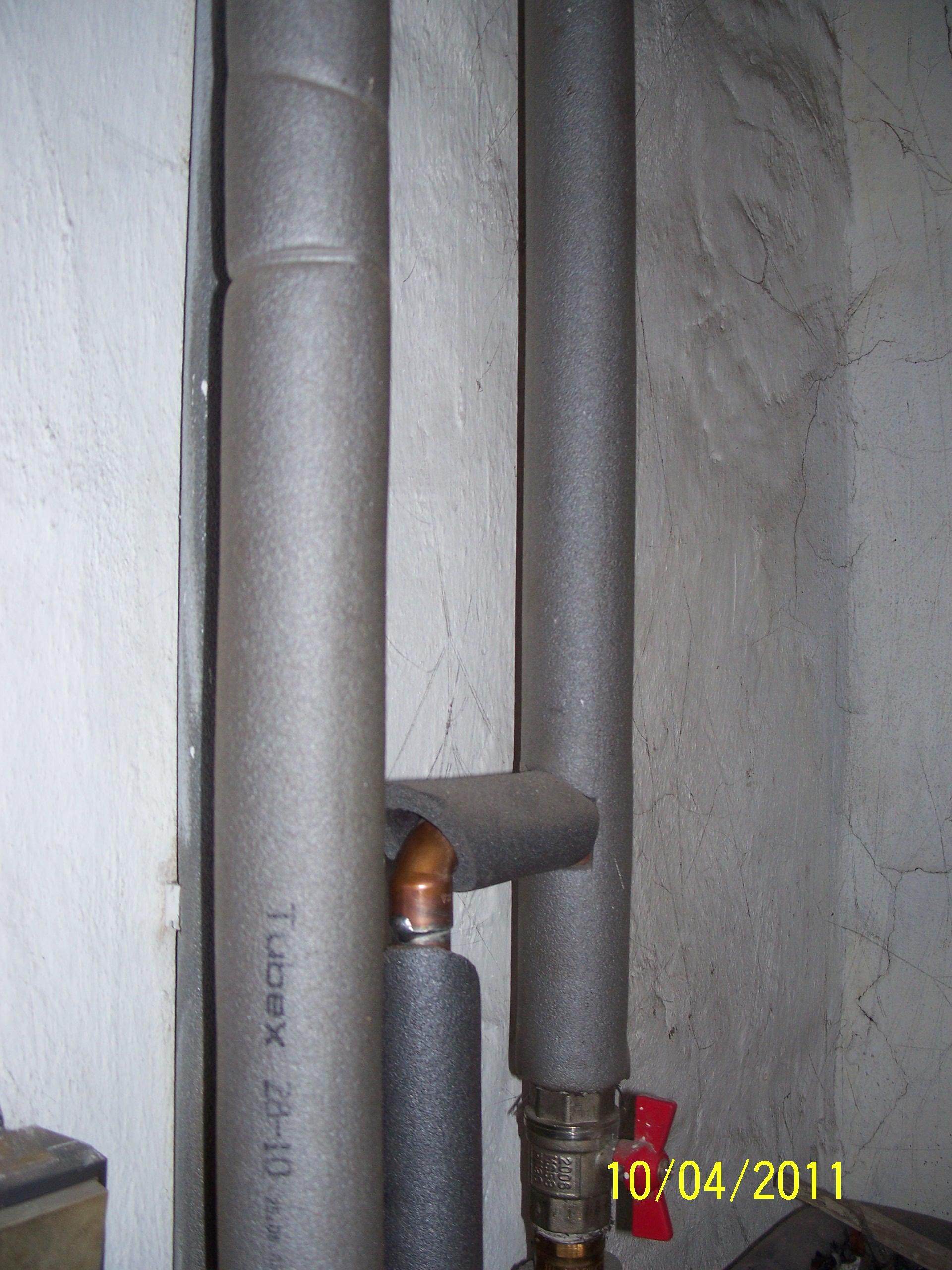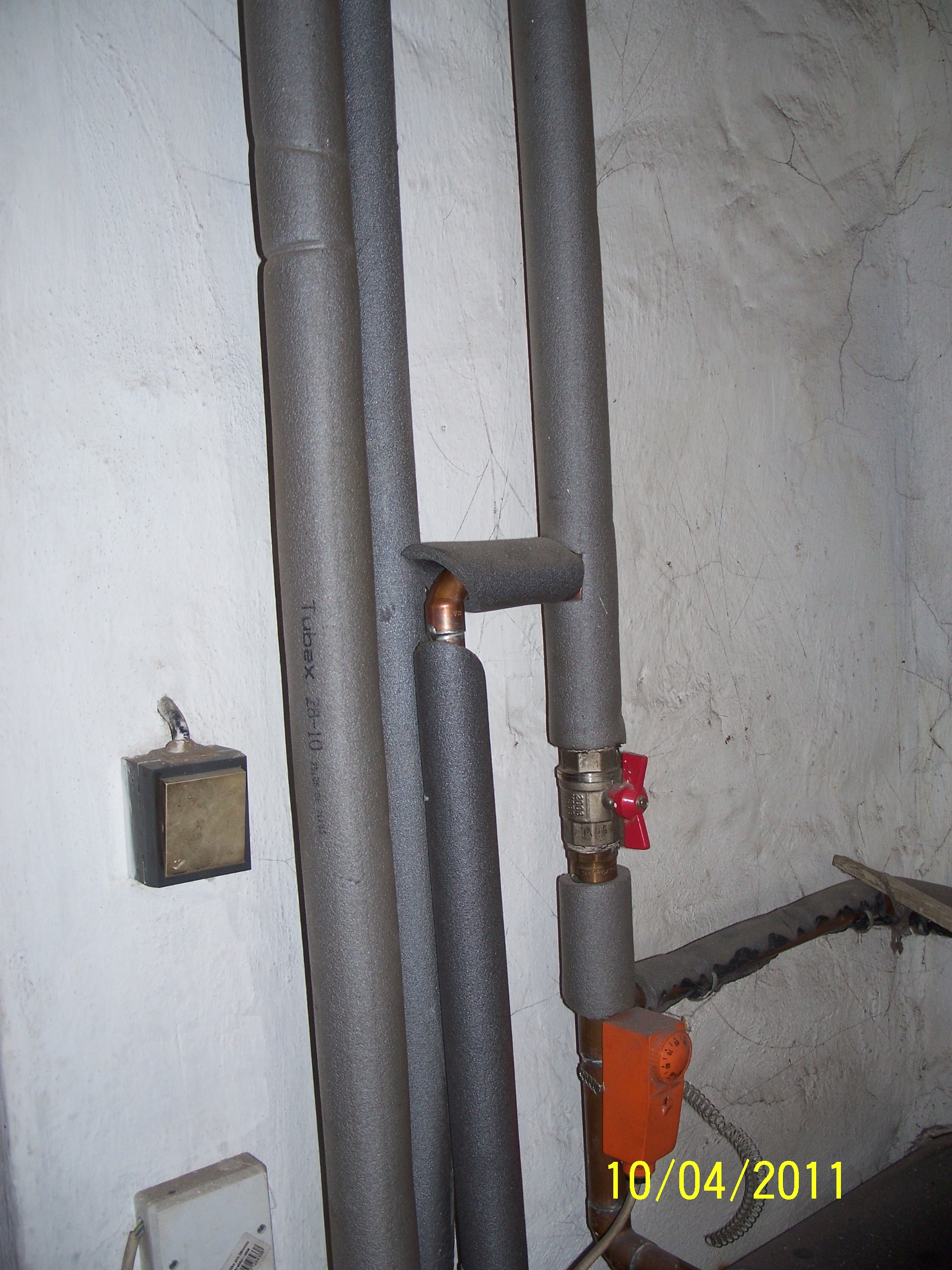 Je potřeba udělat fotky ,jak pokračují trubky za zdí co vedou pod plynovým pecem.Takhle se zdá že vedou obě do teplé-což by to vysvětlovalo.Jaxs shpyoone našipkoval.