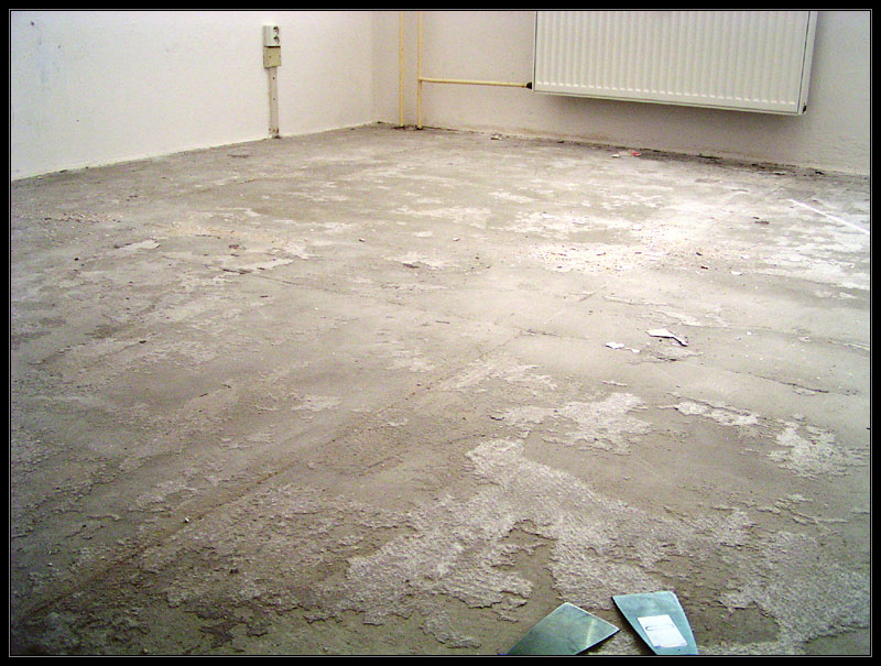 3. odstranit zbytky filcu přilepeného na podlaze - to jde asi nejhůř. Někdo to tam nechává, ale já chtěl mít pod novou podlahou čisto a pevno, tak jsem si máknul. Pokud to půjde nějakou škrabkou (já to zkoušel malou malířskou - to nešlo, možná by zabrala velká obouruční - něco jako na odsekávání ledu z chodníku) tak máš vyhráno. Mně to moc nešlo, tak jsem to odsekával sbíječkou. Ještě teď se omlouvám sousedům za několikadenní martyrium. Ale asi jsem udělal dobře, protože místy byl beton už notně zvětralý a vykutal jsem v něm dost hluboké díry hlavně u stěn.