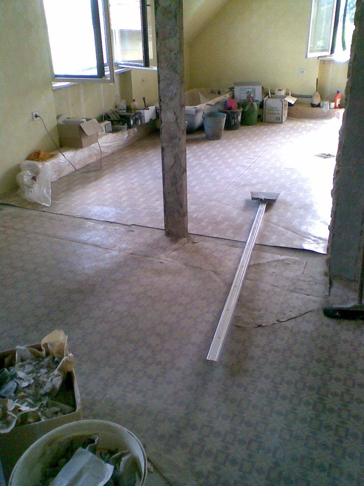 - VIZ FOTO - Zboural jsem příčku mezi dvěma místnostmi za účelem většího prostoru a přechod mezi dvěma místnostmi je "trochu znát"... Na fotce je profil 2,5 m - v té přední místnosti je zvednutý o 5 cm. Zachrání to OSB desky? Popřípadě co s tím musím udělat? Díky...