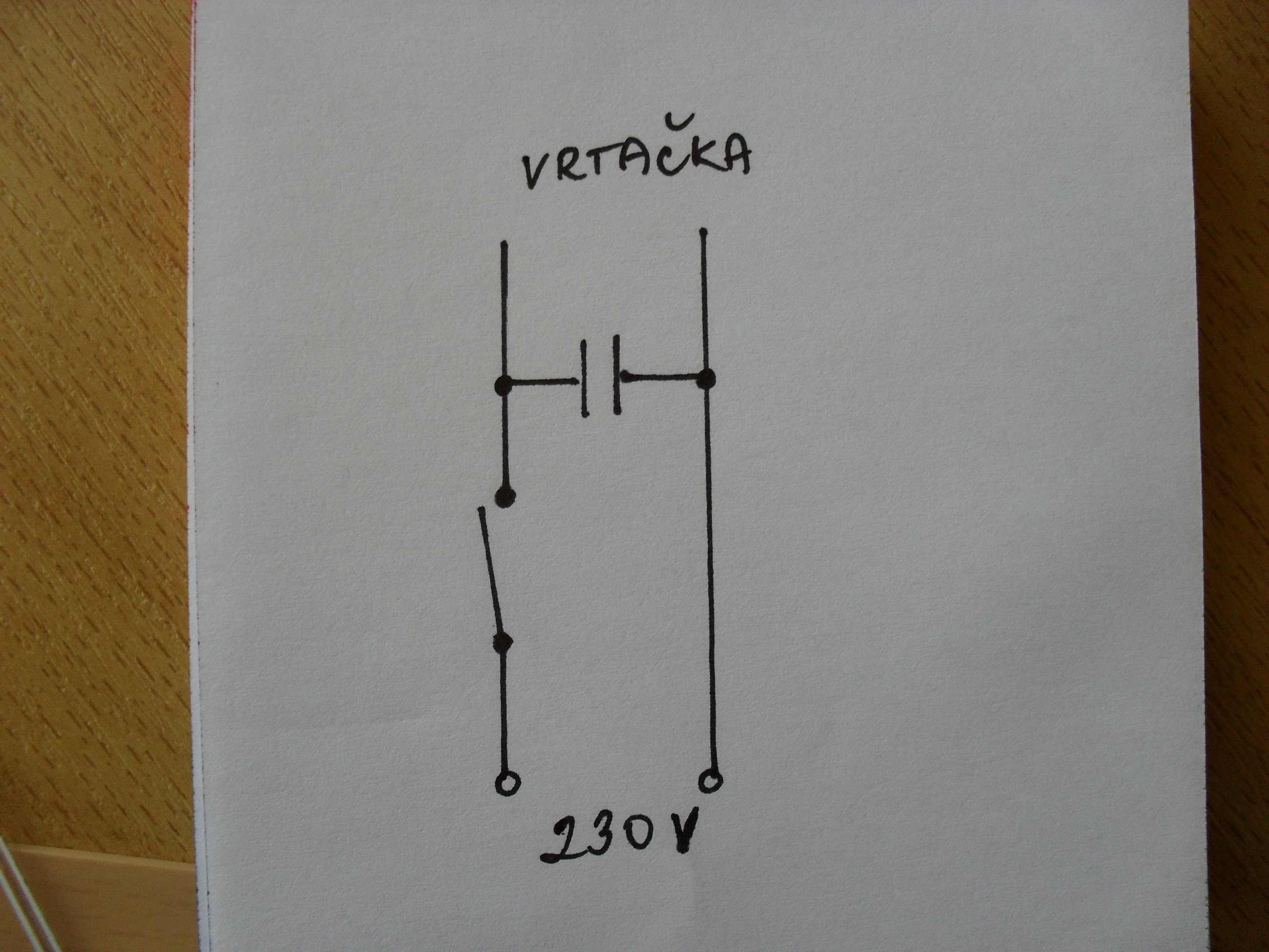 tak jsem se k tomu bohužel dostal až teď- jelikož mam víc věcí.. dal jsem jednopól. tlačítko (dvoupól který by vyhovovalo jsem nemohl sehnat a když jsem objevil bylo na malou zátěž), s tim, že jsem zasilikonoval jednu dirku ve vidlici na ochrannej kolík- takže když zásuvka nebude blbě zapojená, měl by vypínač rozpínat vždycky fázi.. dotaz je to, jestli tam teda nemusí bejt ten odruš. kondenzátor- jestli třeba neriskuju poškození nějaký elektroniky, která by byla, při vrtání touhle vrtačkou, zrovna zapnutá a pokud musí, jak ho zapojit