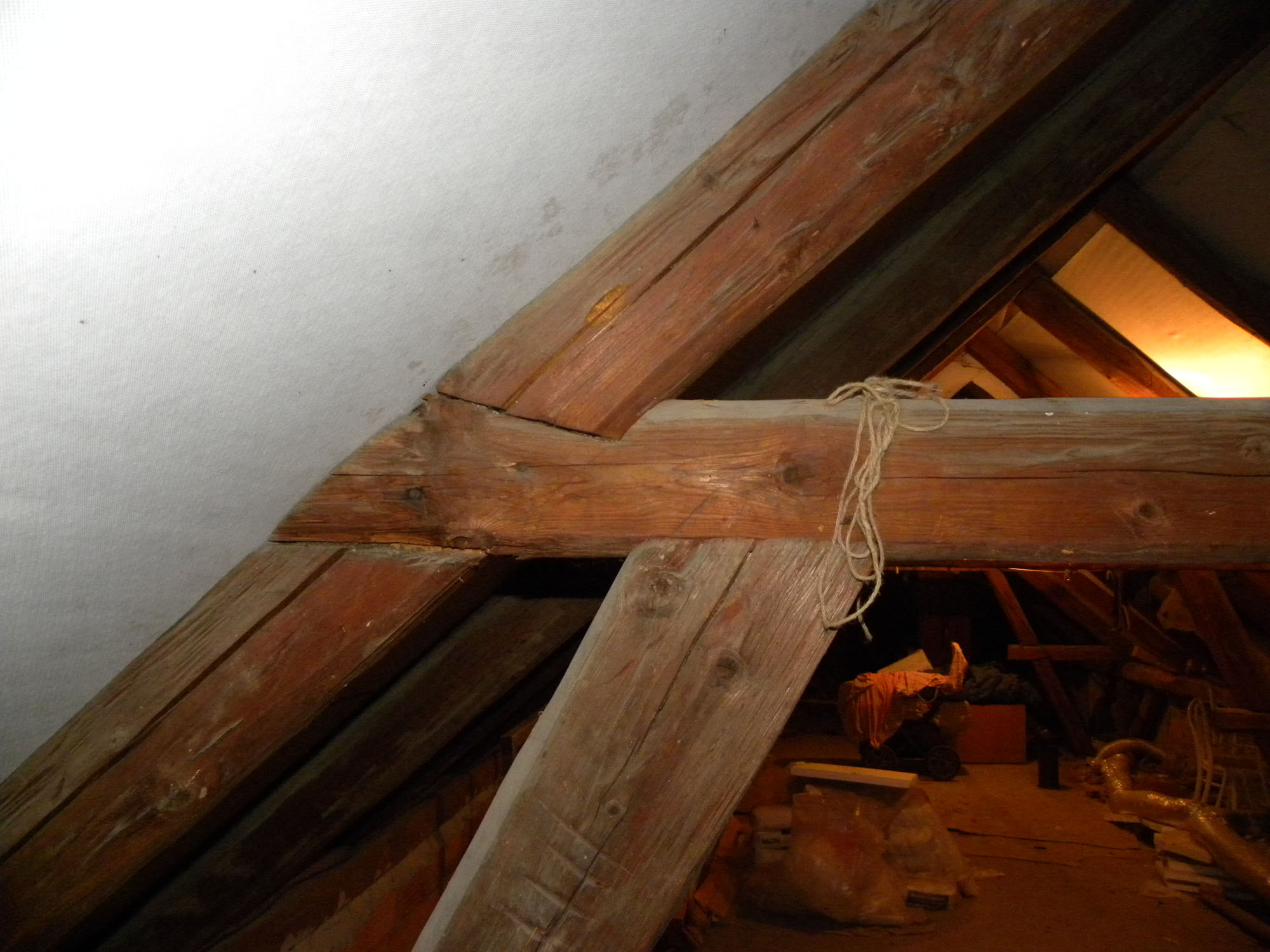 Délka krovu je ca 17 m a je tam 18 krokví, které jsou podepřeny celkem pěti