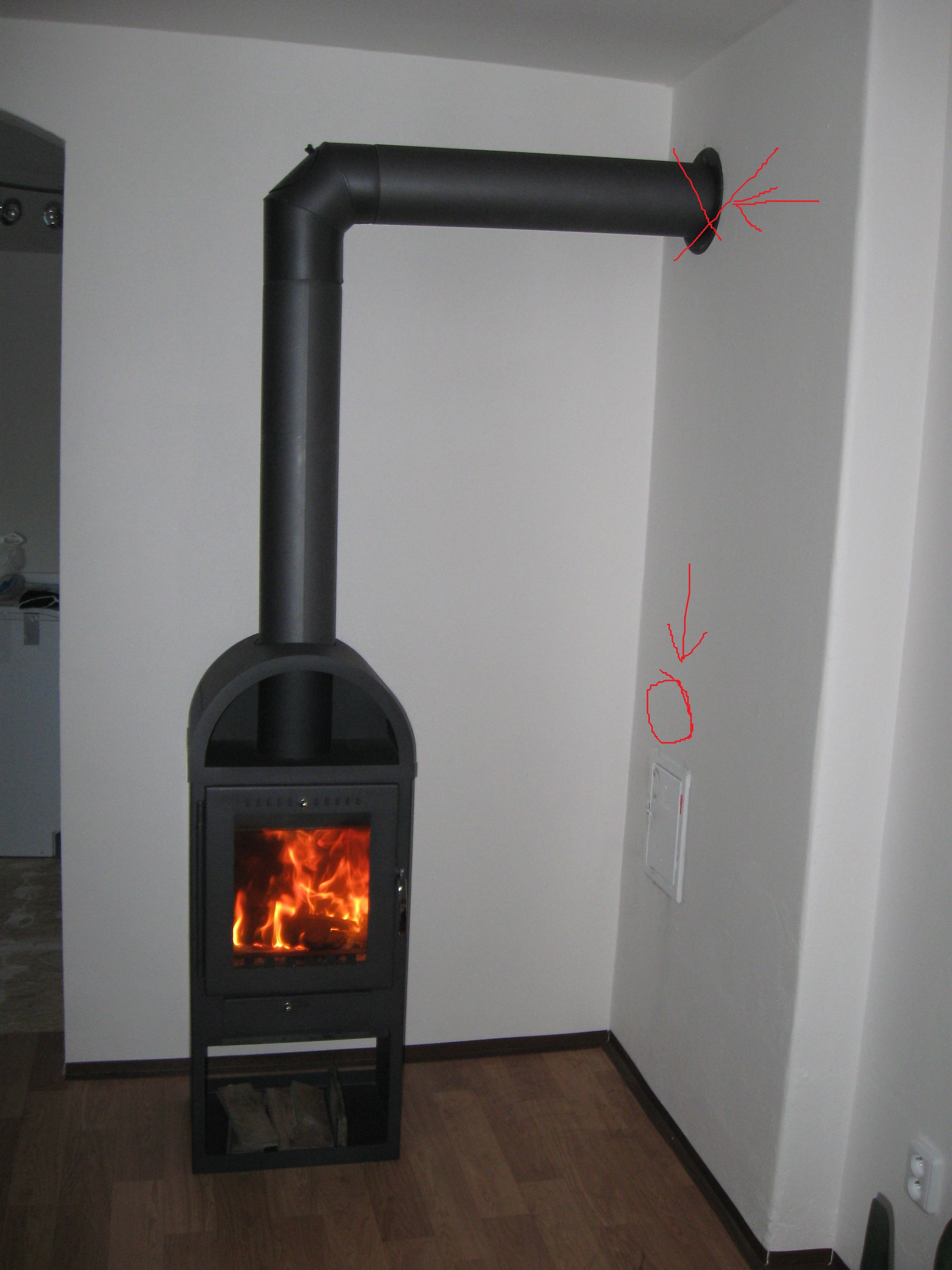 kamna budou mít průmě 130. Kamna jsou s teplovodním výměníkem a budou stát v obýváku a budou vzduchem vytapet 3 místnosti kde budou i radiátory s termohlavicemi. A další 4 místnosti budou jenom teplovodně. Proto co nejkratší kouřovod. Kdyby to nestačilo topit sálavě tak bych otevřel radiátory. Kamna budou mít horní vývod tak jak ty co jsou na obrázku. Bude to stejně zapojení kouřovodu akorát ho chci níž.