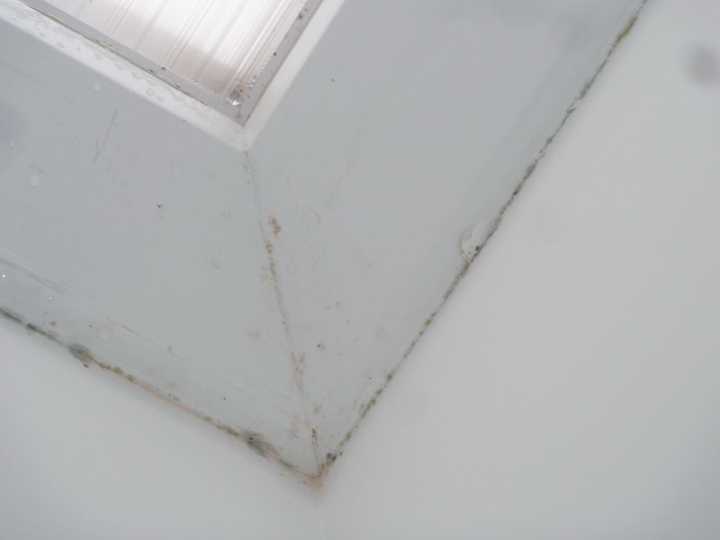 Predvčerom som si všimol v rohoch tohto svetlíku plesne. Voľným okom je tam vidieť aj kvapky vody - zrejme kondezát.