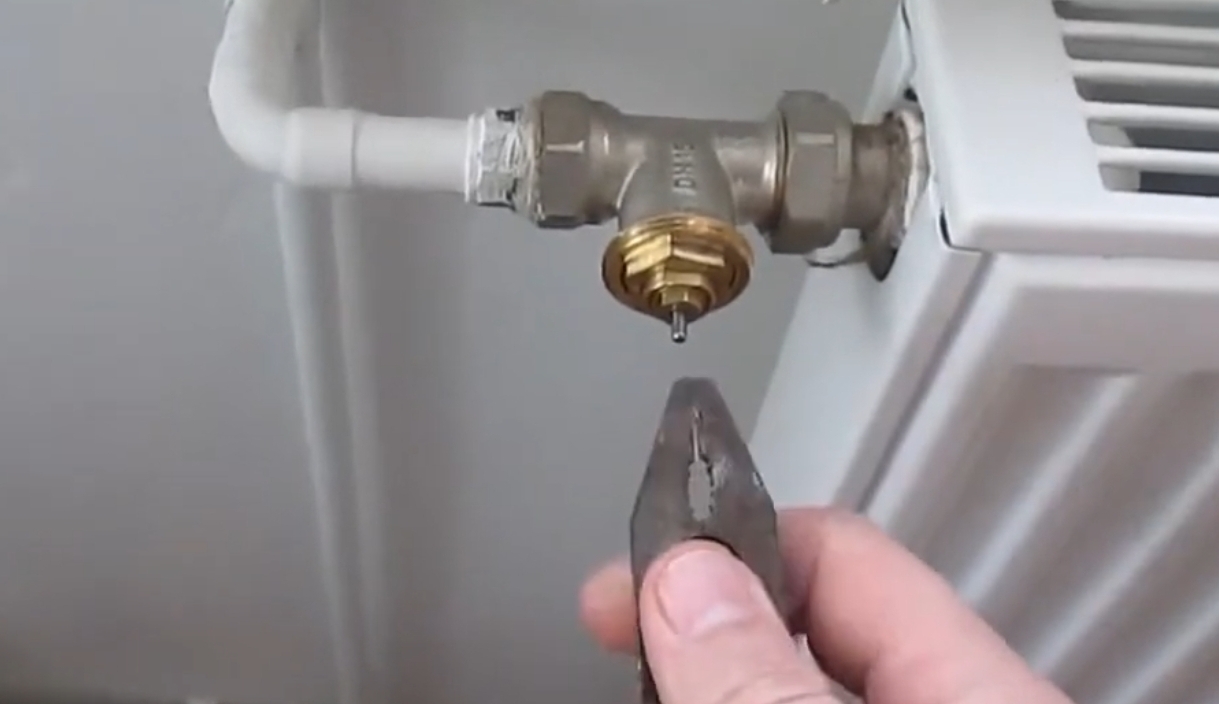 Sundat termostatickou hlavici a zkontrolovat kleštěma chod toho stříbrného dzindzigu. Chytit ten čepík a zkusit zamáčknout. Pokud nejde, tak zatáhnout. Zpočátku vše jemně. Pokud se nehýbá tam ani zpátky, máme problém vyřešen. Chytit dzindzig kleštěma s verglovat s ním dovniř a ven, až se rozhýbe. Klidně 20 sekund. Pomůže i lehčí pobouchání (pogumovanou částí kombinaček) po těle toho ventilu. Nebouchat do dzindzigu!!! Zase poverglovat tam a ven, až bude chod volnější. Ideálně nastavit hlavici na 5ku, našroubovat a užívat si teplo, ať se primitivní pekarka podělá....