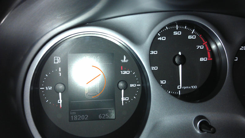 náš Seat Leon 1.8TSI se 7stupňovou DSG převodovkou dnes pípnul výstražným tónem a v levé obrazovce co je normálně počet ujetých kilometrů se objevila žlutá, nebo oranžová digitální ručička, která vypadala podobně jako například ukazatel paliva, mířila takovým směrem, že kdyby dole bylo 0 a nahoře 100, ukazuje kolem 70. Bohužel jsme si ji ani neprohlídli a během půl vteřiny zmizela.