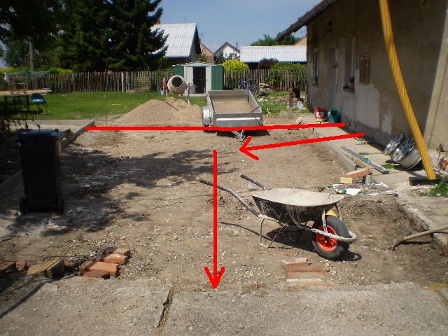 Ahoj všem chtěl bych se zeptat máme skoro připravenou příjezdovku na zámkovou dlažbu a řešíme problém kam sadělat odvodňovací kanálky přikládám foto spády jsou znázorněny červenou barvou jak budoucí chodník u baráku tak příjezdovka je do tvaru V dále vše je spádováno směrem ke kolečku viz.foto