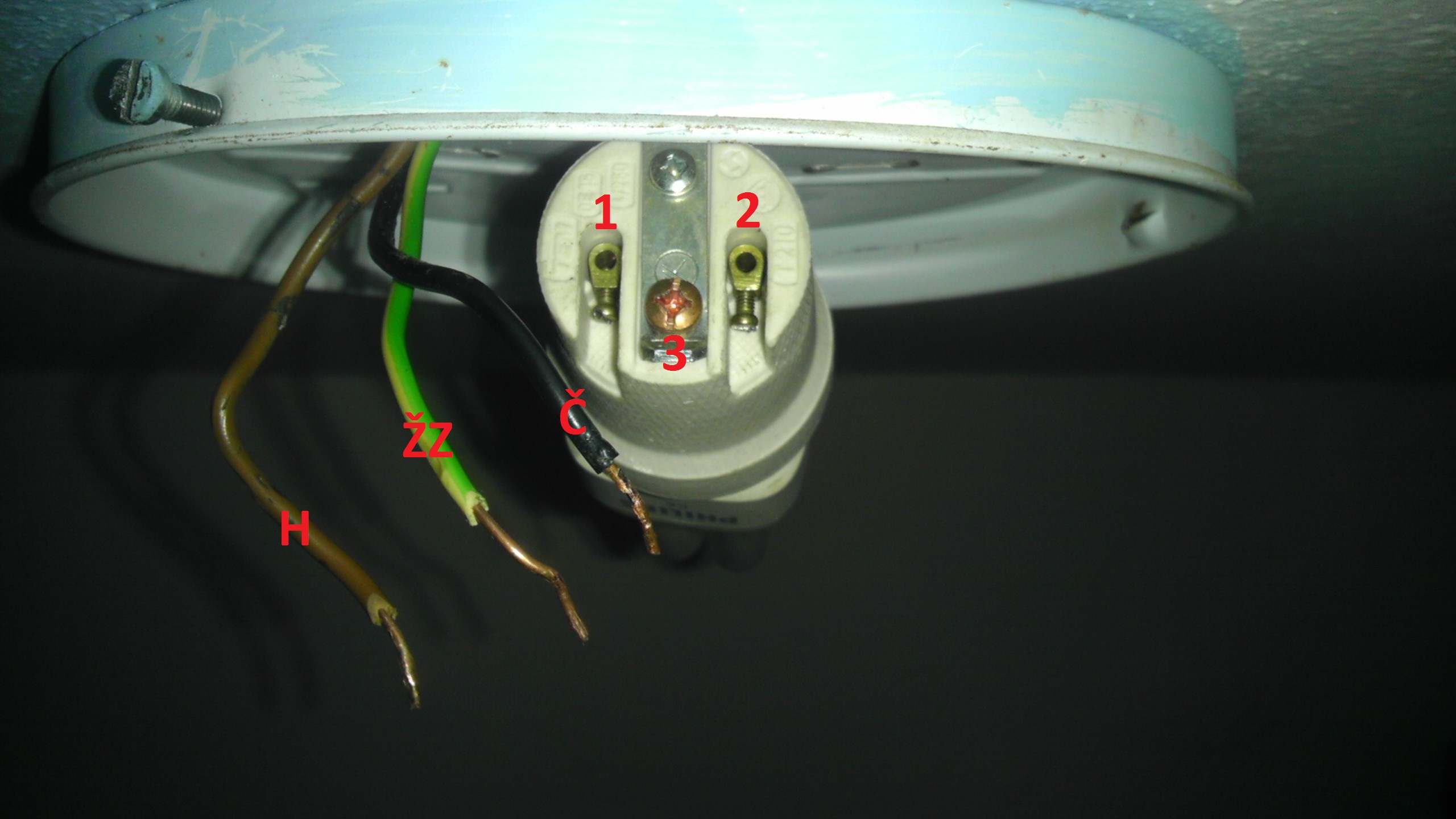 zkoušečku mi rozsvítí černoch, takže sem ho šoupnul do 1, do 2 by měl jít nulák což by měl bejt hnědej, ale to pak nejede, vyzkoušel jsem tam dát žlutozelenej a světlo svítí, takže tu musej bejt prohozený kabely... musí tam bejt zapojené uzemnění? už sem kabel zalepil :-) (je tam žárovka 60W)