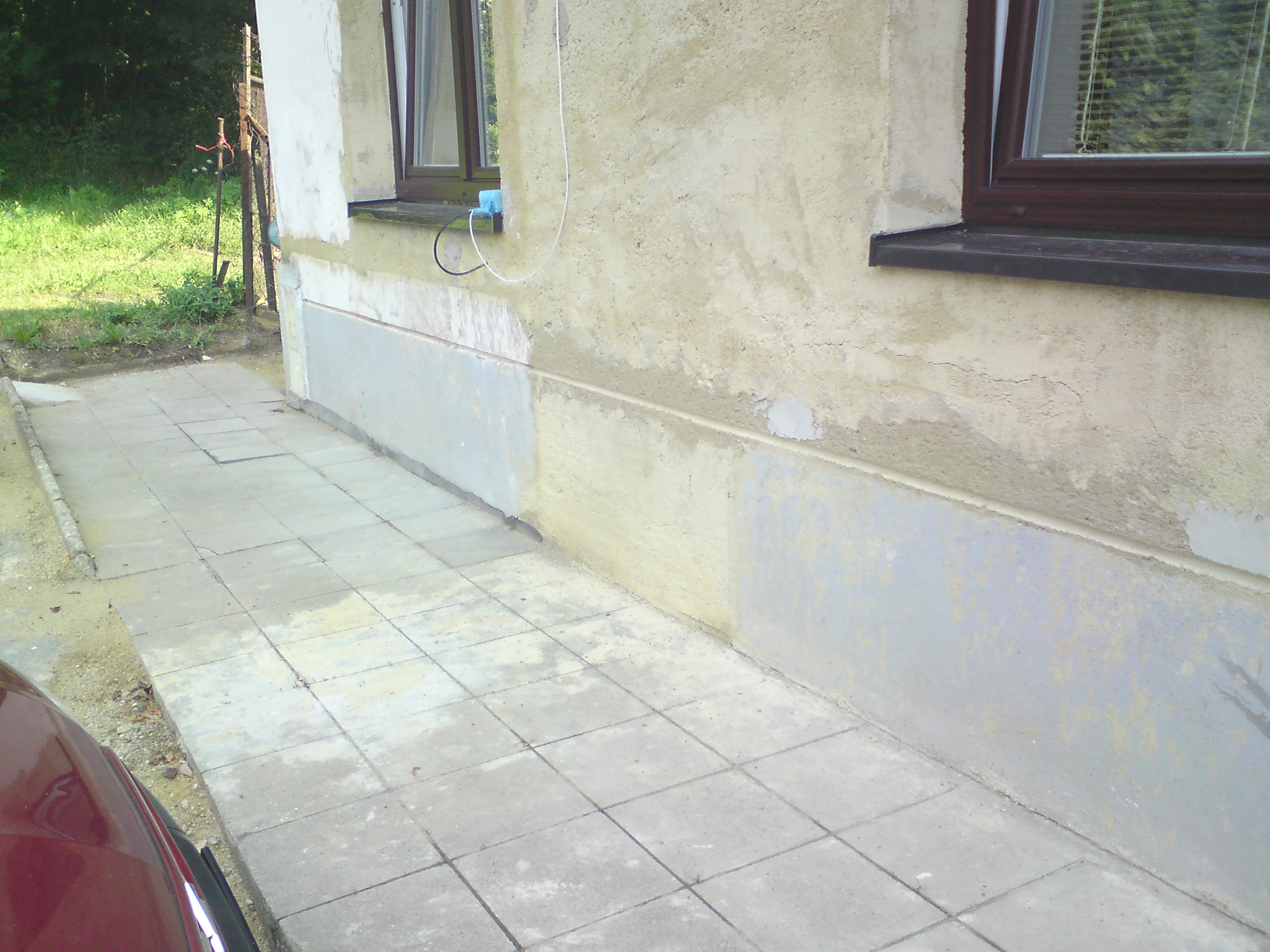 Dum ma jen obytne prizemi a pudu,puda se do budoucna bude prestavovat na obytnou cast.. Prizemni podlahy domu jsou v urovni venkovniho terenu. Viz.foto cislo 2. Bocni sokl je hlubsi a uroven vnitrnich podlach zacina zhruba 50 cm nad zemi od betonovych kachli. Foto c.1 a 3. Steny maji zhruba 45 az 50 cm. Takze radite odsekat cast cihel a zapustit do nich polystyren? Nezalepim tim ten sokl 8 cm polysem? Jen hlavne aby to dychalo a nepromrzalo. Pokud tedy budu takto postupovat tak pak nasledne po aplikaci polystyrenu musim na nej dat lepidlo(jake?nejlepe neco od Cemixu co je odolne vode) pak nasledne perlinku a pak zase lepidlo ze? Vite jsem laik a kazda dobra rada je pro me cenna.-) Dum ma z casti sanacni omitky,jsou aplikovany po cele delce obvodovych zdi,nejvise do 1.5 metru.