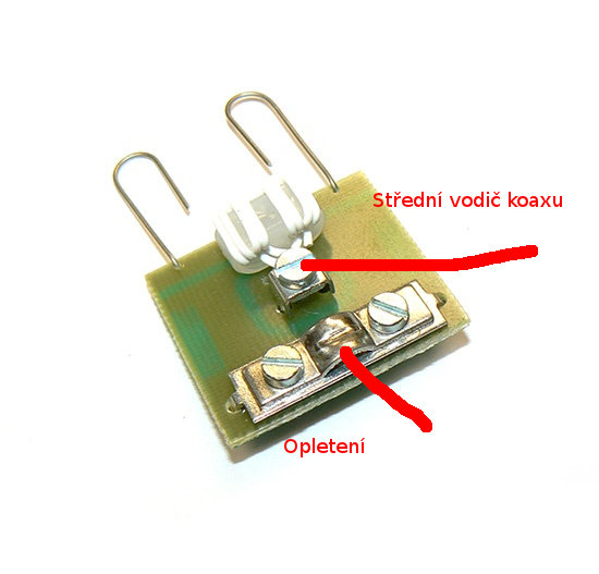 V kabičce antény musíš tykadla vodivě připojit k dipólu antény. Koax - středový vodič pod jeden šroubek. Stínění pod půlobjímku.