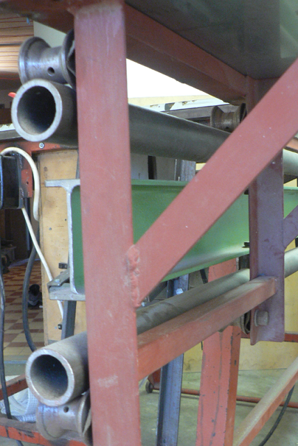 bahno, ty trubky jsou k traverze přišroubovaný. V tom sloupku je díra a v trubce je závit M8. Sloupek je z jedné strany rovný a z druhé strany je vyfrézovaný rádius podle průměru trubky tak, aby v něm trubka pěkně seděla. Co má být trochu přesné, tak to raději šroubuju. Jak se to ohřeje, tak se to vždycky uhne, ohne, ulítne, pohne a kdoví co ješte všechno