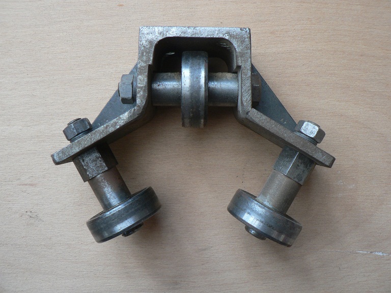 Nějaké opotřebení v místě styku a tlaku vždycky bude, hodně záleží na materiálu. Pokud to bude kalené, tak to bude téměř věčné, ale tohle je už hodně o penězích. To co navrhujete by bylo lepší... dole by stačilo jen opěrné ložisko . Není to ale fixované směrem do prava. Za určitých okolností by s tím mohl být problém. Musí to být konstruované tak, aby se to nemohlo hnout nikam.Já jsem to tenkrát dělal z toho , co jsem měl k dispozici tudíž, aby to bylo co nejlevnější ( no jo, to byly ty začátky ). Konstrukce toho vozíku a dráhy musí být dostatečně tuhá vůči uvažovanému zatížení ... potom nemůže dojít k rozevření rolen a nějakému uvolnění. Kdysi jsem si začal připravovat vylepšení, ale pak to život nějak zašmodrchal jinak